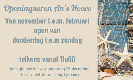 Vanaf zaterdag 1 november zal Restaurant An's Hoeve gesloten zijn van maandag tot en met woensdag.